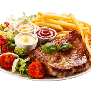 Sauce tomate, viande hachée, lardon, chorizo, merguez, jambon, poulet, poivron, champignons, olive, oignon, fromage.